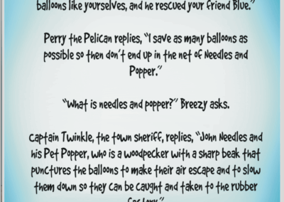 Ever wonder where balloons go when you look up, or when you see them floating in the sky? That question was posed to me more than 30 years ago by my son. I carried that question for all these years and now that my children are all grown and having children of their own, I thought it was time to tell the story of “Bloonstown and The Adventures of Blue and Breezy’